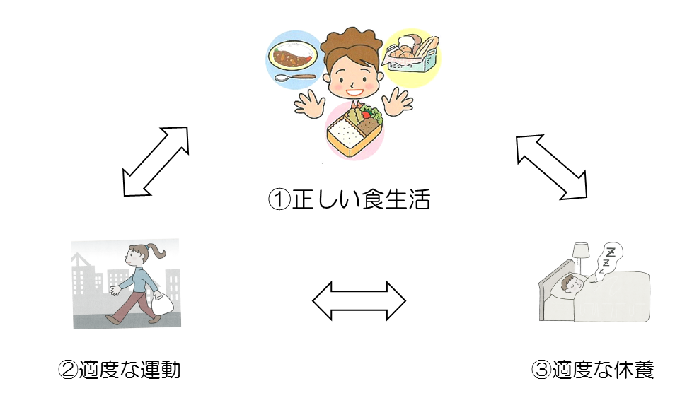①正しい食生活(栄養素のバランスを取って過不足しない)